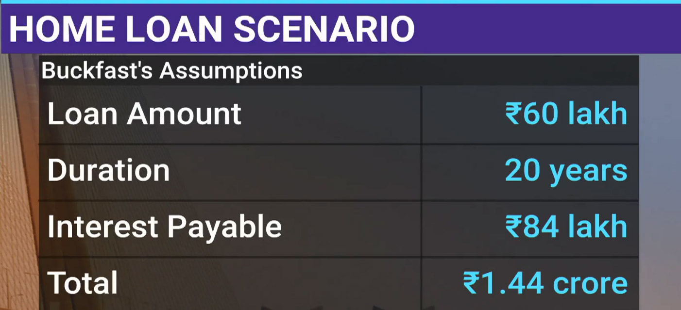 Home loan rates have been about 10.5% over the last 20 years and are currently around 8%, so an average of these rates has been considered in this example. In the above image, you can see that in 20 years, interest payable exceeds the loan amount; you pay a whopping Rs. 1.44 crores to the housing finance company on a loan of just Rs. 60 lakhs. For a housing loan of Rs. 60 lakhs, EMI is about Rs. 60,000 per month.